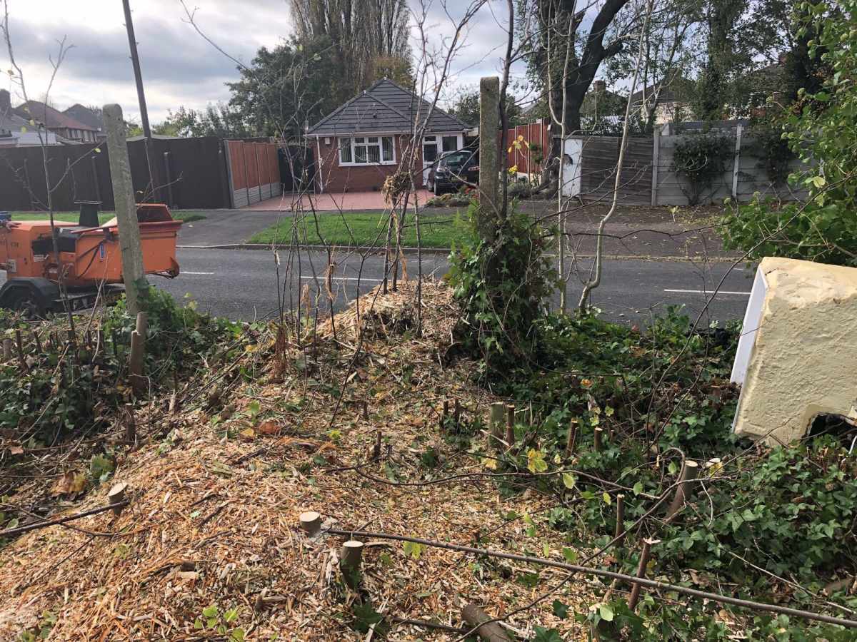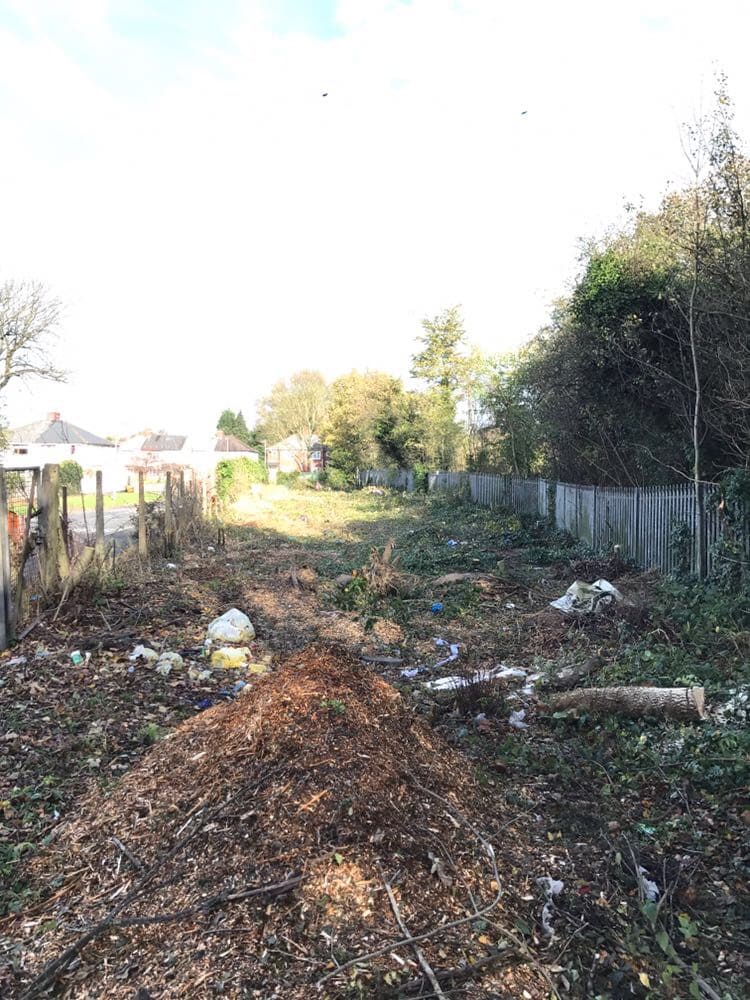 The land was approximately 3000 square metres. We cleared all the trees, removed all roots and all the green veg. We shredded all the tree roots and removed all green waste according to legislation set out by the government.